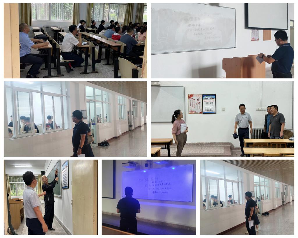 2023年8月28日,我校新学期开学第一天,学校组织了学期初教学秩序大检查,教务处带队,联合宣传部、工会、国资处、保卫处、后勤处、教学质量监督评估中心、图书馆分别对临潼校区骊山校园东区1、2、3号教学楼、实验楼、图书馆、办公楼及相关区域校园环境,临潼校区秦汉校园学院楼及相关区域校园环境进行了检查,相关校领导参与检查。
